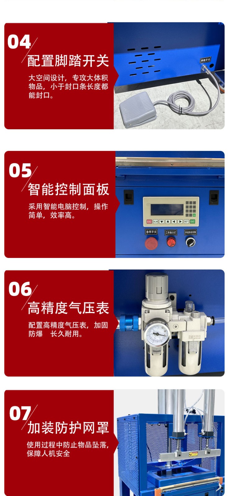 - 壓力大小:合適的壓力能使包裝材料在加熱時(shí)充分接觸并融合,形成牢固的封口。壓力不足,封口處無法完全密封,會(huì)出現(xiàn)漏縫。壓力過大,可能會(huì)使包裝材料過度擠壓、變形,甚至損壞,尤其是對(duì)于一些質(zhì)地較軟或較薄的材料,容易導(dǎo)致封口處破裂或材料內(nèi)部結(jié)構(gòu)受損。