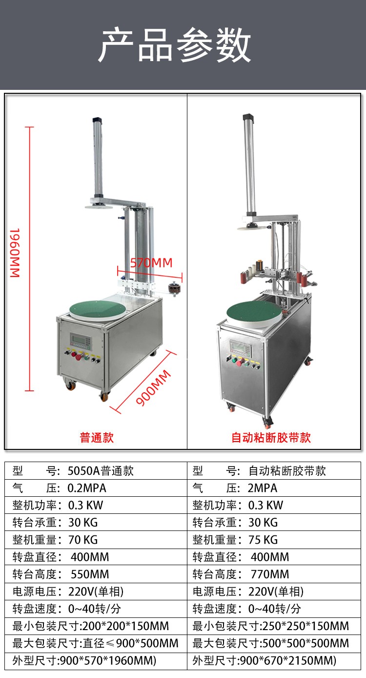 - 重型 / 大型貨物:替代人工難以完成的高強(qiáng)度纏繞作業(yè),既保證包裝牢固度,又避免人工操作的安全風(fēng)險(xiǎn),提升重型貨物包裝效率。