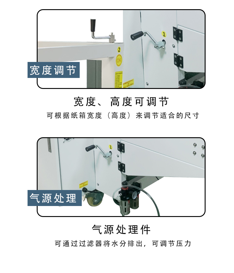 - 適用范圍廣:可適用于各種材質(zhì)和尺寸的紙箱,無論是紙質(zhì)較硬的重型紙箱,還是普通的輕型紙箱,都能進行良好的封箱操作。對于不同規(guī)格的紙箱,只需對機器進行簡單的調(diào)整即可適應。