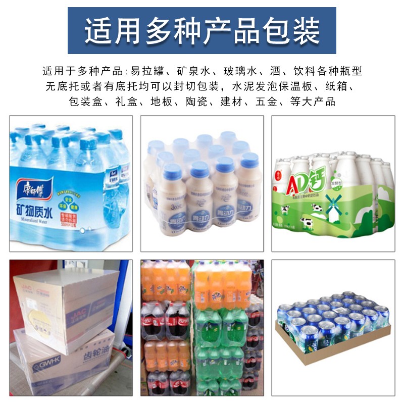 - 全自動袖口式套膜機可以使用多種包裝薄膜,如聚乙烯(PE)、聚氯乙烯(PVC)等常見薄膜材料。企業能夠根據產品的特性(如是否需要防潮、透明度要求等)、成本預算以及環保要求等來靈活選擇合適的薄膜。而且,設備能根據不同薄膜的特性,如厚度、柔韌性等,自動調整套膜的力度和方式,確保套膜質量。