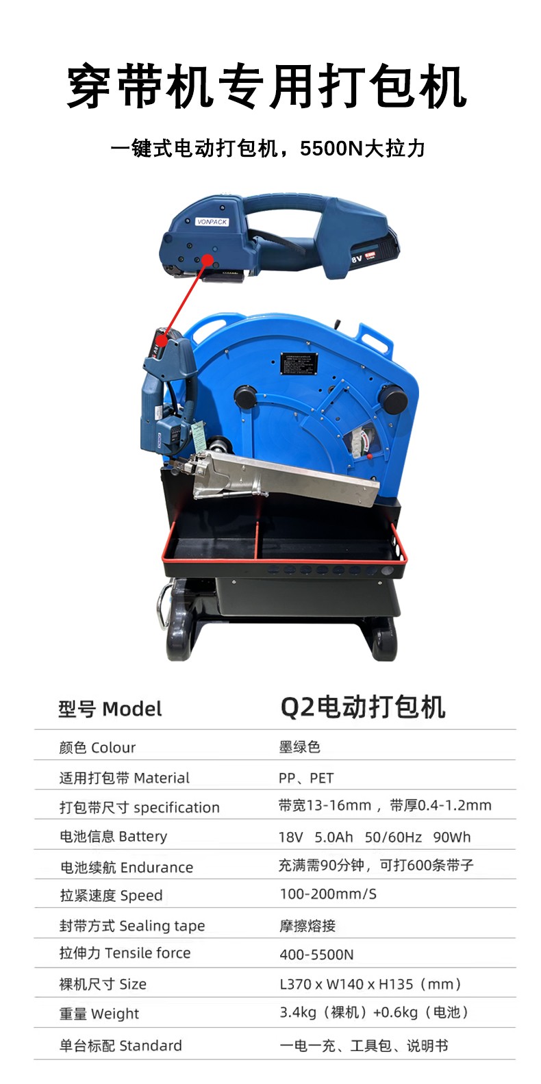 - 穿帶機是一種在包裝流程中起輔助作用的設(shè)備,主要用于將打包帶穿過被包裝物品周圍或包裝結(jié)構(gòu)中的特定位置,以便后續(xù)進行打包操作。它可以被看作是包裝自動化生產(chǎn)線中的一個環(huán)節(jié),能夠有效提高打包的效率和準確性。