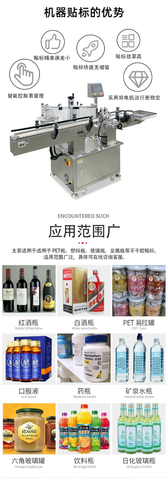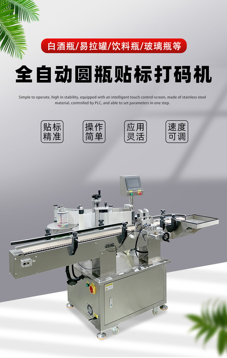 - 貼標:當圓瓶到達貼標位置時,貼標機構的標簽牽引裝置根據預設的標簽長度,將標簽從標簽卷上牽引出來,貼標頭在控制系統的指令下,將標簽準確地貼附在圓瓶表面。同時,壓標裝置對標簽進行壓實,使其牢固地粘貼在瓶身上。