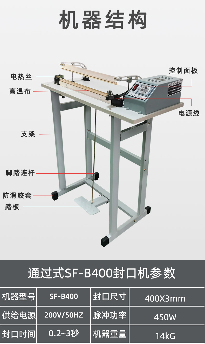 SF-B400工廠直銷腳踏式薄膜封口機通過式收縮膜封切機加熱快速封口機